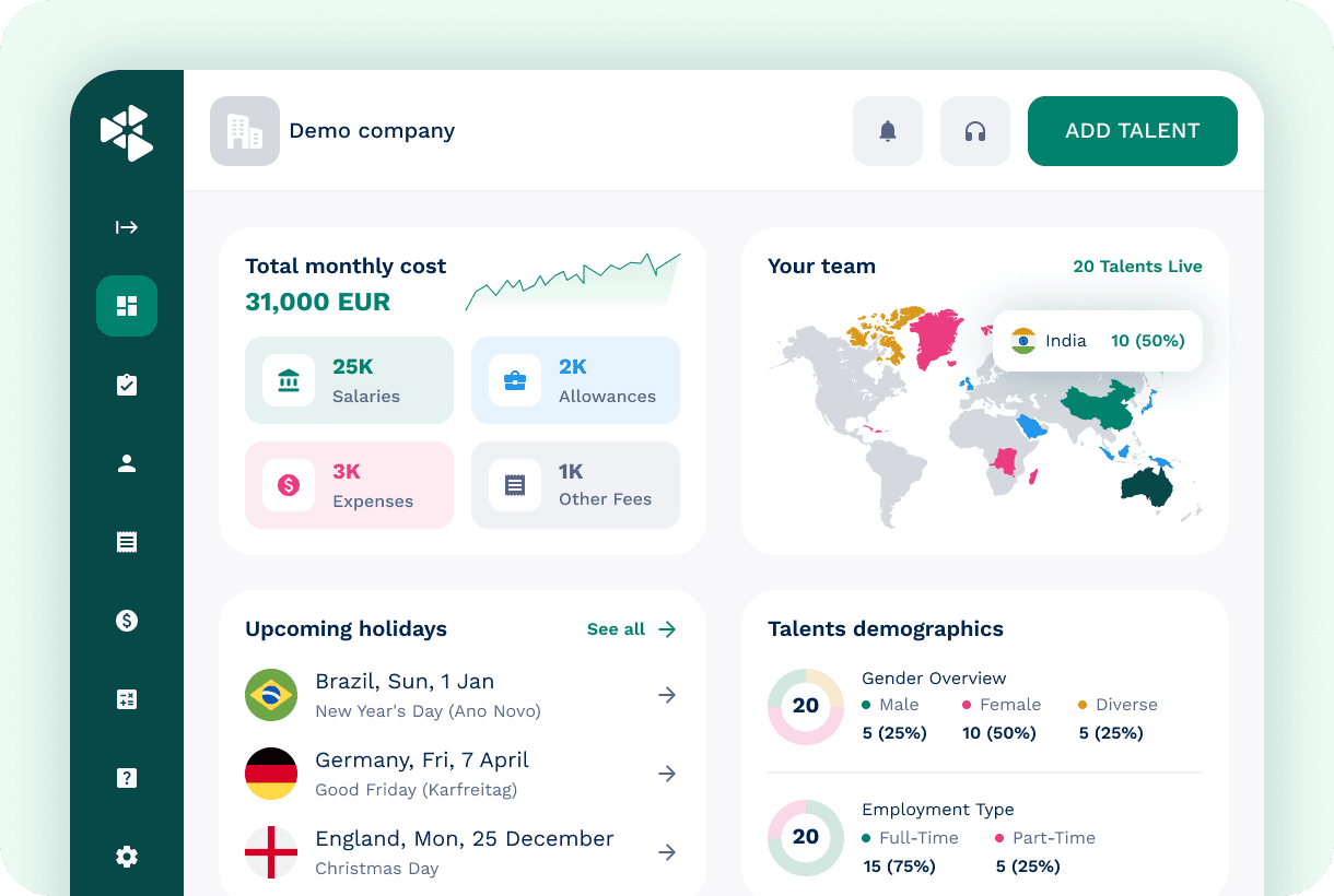 All employment flows include embedded compliance checks, contract validation, and country-specific business logic. Build confidently in any region.